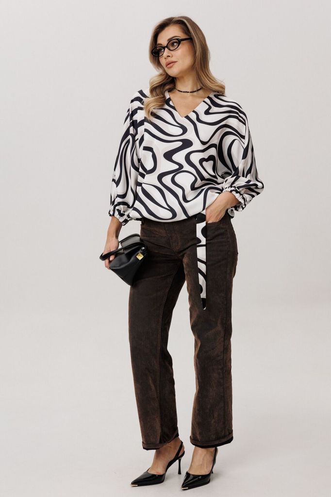Состав: Вискоза-60%; ПЭ-40%; Сезон: Осень-Зима Рост: 170 Страна бренда: Беларусь Состав: Вискоза-60%; ПЭ-40%; Классическая блуза прямого силуэта с лёгкостью струится по фигуре, даря ощущение невесомой... Показать описание свободы каждый день. Её мягкий, обнимающий шею круглый вырез подчёркивает изящество, а рукава три четверти с аккуратными манжетами добавляют образу лёгкую, воздушную ноту. Особую прелесть и практичность блузе придаёт мягкая резинка по низу, позволяющая легко регулировать длину и степень прилегания, создавая идеальный баланс между удобством и элегантностью. Всё это великолепие завершает нежный цвет «черно-белые цветы», превращающий простоту кроя в настоящее ежедневное вдохновение. Универсальность блузы открывает безграничные возможности для стиля: будь то деловая встреча в паре со строгими брюками, неспешная прогулка с джинсами или романтический вечер, когда она мягко ниспадает поверх юбки-миди. Уверенность, комфорт и стиль - вот что вы получаете, надевая эту блузу от Анелли. На модели юбка-брюки 1783. Замеры: Размер 54: ОГ-124; ОБ (резинка растянута) - 134; ОП-46; ДИ-64; ДР-46; Размер 56: ОГ-128; ОБ (резинка растянута) - 138; ОП-48; ДИ-64; ДР-46; Размер 58: ОГ-132; ОБ (резинка растянута) - 142; ОП-48; ДИ-65; ДР-46; Размер 60: ОГ-136; ОБ (резинка растянута) - 146; ОП-50; ДИ-65; ДР-46; Размер 62: ОГ-140; ОБ (резинка растянута) - 150; ОП-50; ДИ-67; ДР-46; Размер 64: ОГ-144; ОБ (резинка растянута) - 154; ОП-52; ДИ-67; ДР-46.