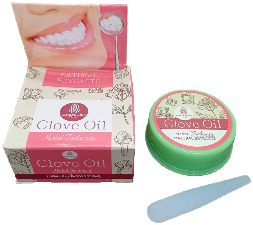 Травяная гвоздичная зубная паста . Освежает дыхание, подавляет рост бактерий во время сна. Удаляет пятна от кофя и сигарет, отбеливает зубы. 30 гр.Отбеливающая зубная паста содержит такие натуральные ... Показать описаниекомпоненты, как масло гвоздики, экстракт листьев гуавы, порошок листьев алоэ вера, ментол, камфора. Способ применения: Чистить зубы не менее 2 минут небольшим количеством отбеливающей зубной пасты. Применять зубную пасту 2 раза в день. Состав: карбонат кальция, ментол, камфора, гвоздика, лаурилсульфат натрия