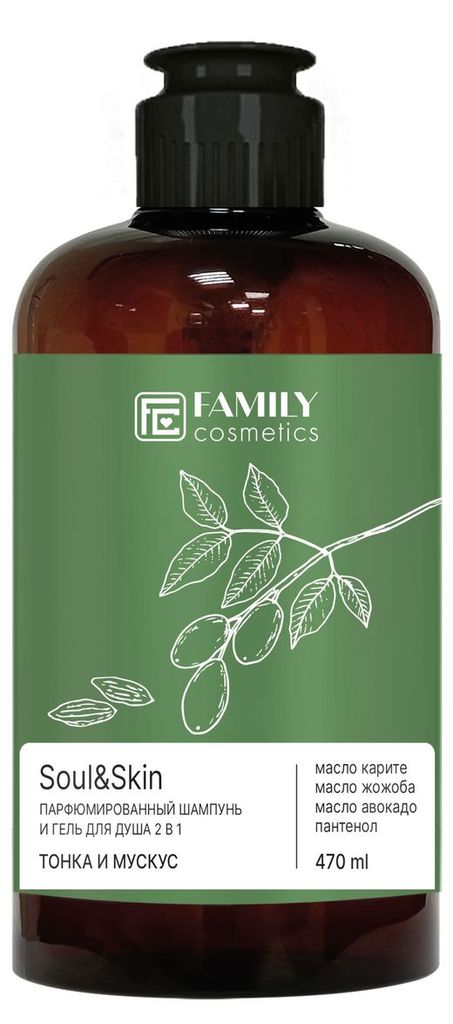 FAMILY COSMETIC SOUL&SKIN Парфюмированный шампунь и гель для душа 2 в 1 Амбра и Перец, 470млВопросы по товару