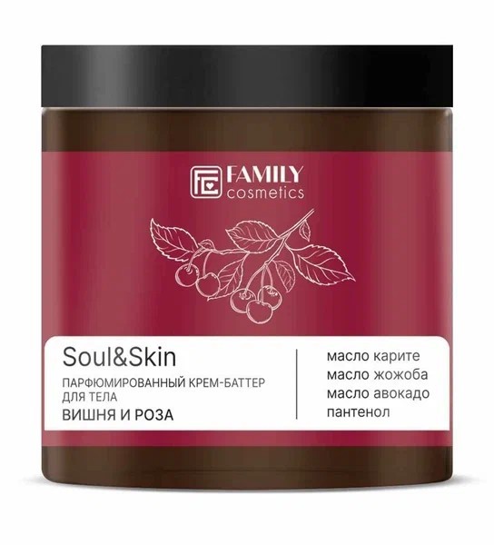 FAMILY COSMETICS SOUL&SKIN Парфюмированный крем-баттер для тела Вишня и Роза, 240млВопросы по товару
