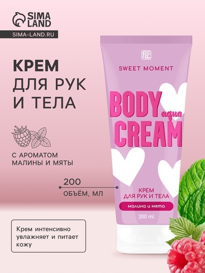 FAMILY COSMETICS SWEET MOMENT Крем для рук и тела Малина и Мята, 200млВопросы по товару