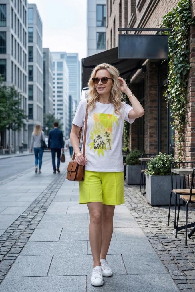 Сочные цвета костюма Парадиз наполняю Вашу жизнь яркими красками. Комплект состоит из базовой футболки с дизайнерским принтом и модных шорт комфортной длины с прошитыми стрелками и кармашками. В таком... Показать описание костюме Вы привлечете к себе внимание. Также в нем можно пойти на прогулку, отправиться на экскурсию, в отпуск или носить дома. * Артикул: 10680 * Состав Футболка: Хлопок 100% Шорты: 80% Хлопок, 15% П/Э, 5% Эластан * Цвет Лайм Светлый * Изготовитель ИП Вартанян Марина Валерьевна * Торговая марка Lika Dress * Тип ткани Футболка - кулирка Шорты - футер 2-х нитка * Длина изделия Футболка: 44/46-60, 48/50-62, 52/54-63, 56/58-65 Шорты: 44/46-20, 48/50-20, 52/54-21, 56/58-21 * Для кого для женщин * Застежка Нет * Плотность ткани Плотная * Уход Машинная стирка * Карманы В боковом шве * Высота посадки Высокая * ТН ВЭД 6104299000