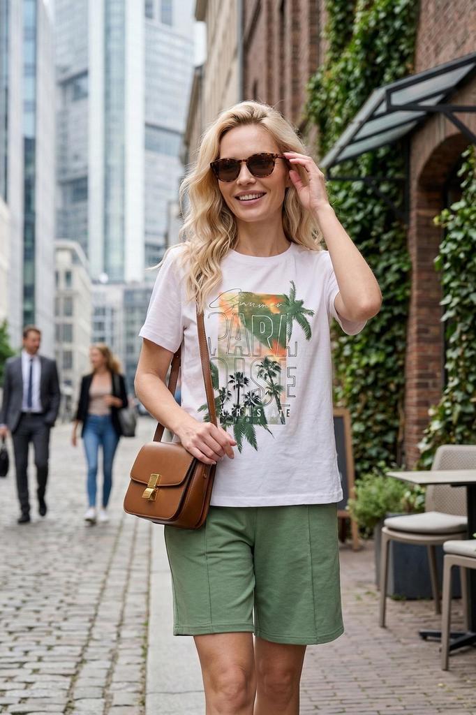 Сочные цвета костюма Парадиз наполняю Вашу жизнь яркими красками. Комплект состоит из базовой футболки с дизайнерским принтом и модных шорт комфортной длины с прошитыми стрелками и кармашками. В таком... Показать описание костюме Вы привлечете к себе внимание. Также в нем можно пойти на прогулку, отправиться на экскурсию, в отпуск или носить дома. * Артикул: 10679 * Состав Футболка: Хлопок 100% Шорты: 80% Хлопок, 15% П/Э, 5% Эластан * Цвет Олива * Изготовитель ИП Вартанян Марина Валерьевна * Торговая марка Lika Dress * Тип ткани Футболка - кулирка Шорты - футер 2-х нитка * Длина изделия Футболка: 44/46-60, 48/50-62, 52/54-63, 56/58-65 Шорты: 44/46-20, 48/50-20, 52/54-21, 56/58-21 * Для кого для женщин * Застежка Нет * Плотность ткани Плотная * Уход Машинная стирка * Карманы В боковом шве * Высота посадки Высокая * ТН ВЭД 6104299000