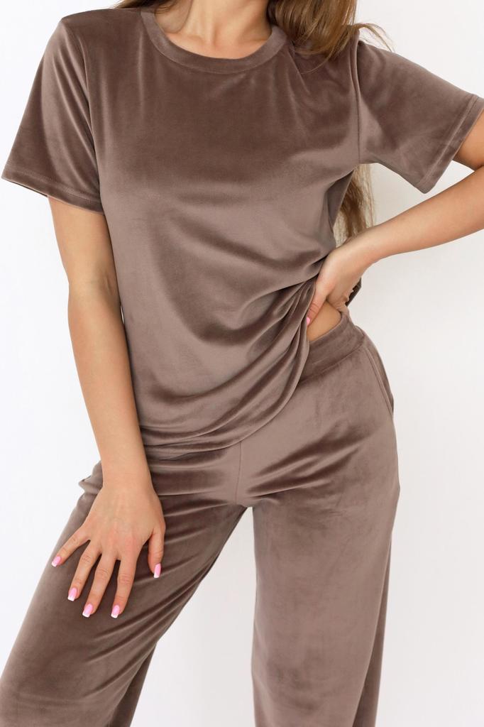 Удобный и стильный комплект для дома и отдыха, созданный для максимального комфорта. Мягкая, приятная к телу ткань нежно обволакивает и красиво драпируется, подчёркивая аккуратный и ухоженный вид изде... Показать описаниелия. Футболка прямого кроя с аккуратной обтачкой по горловине свободно сидит по фигуре и не сковывает движений. Брюки прямого силуэта выполнены на эластичной резинке, обеспечивают комфортную посадку и удобство в течение всего дня, а карманы в боковых швах добавляют практичности. Комплект отлично подходит как для отдыха дома, так и для расслабленных повседневных образов. Широкий размерный ряд позволяет подобрать вариант на любую фигуру, а разнообразие расцветок даёт возможность выбрать комплект под настроение и стиль. * Артикул: 10324 * Состав Полиэстер 100% * ГОСТ 31409-2009 * Цвет Графит * Изготовитель ИП Вартанян Марина Валерьевна * Торговая марка Lika Dress * Тип ткани Велюр * Для кого для женщин * Плотность ткани Плотная * Уход Машинная стирка * ТН ВЭД 6104299000