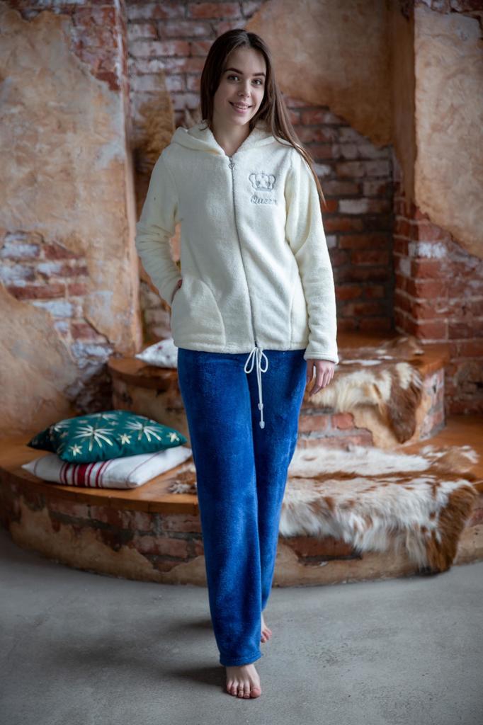 Общая длина изделий: Кофта: 44/46 - 61 см, 48/50 - 66 см, 52/54 - 68 см Брюки: 44/46 - 110 см, 48/50 - 111 см, 52/54 - 111 см Шикарный домашний костюм одарит теплом и уютом своих «Королев». В комплект... Показать описаниее мягкая куртка в белом оттенке и брюки синего цвета. Куртка с застёжкой на молнии и капюшоном. Свободный крой изделия особенно удобен и не стесняет движений. Объём куртки понизу регулируется кулисой на шнурке. Куртка имеет два кармана и украшена принтом «Qween». Брюки длинные прямого кроя на поясной резинке. Красота, комфорт и тепло – то, что сочетает в себе костюм Шик. * Артикул: 7052 * Состав Полиэстер 100% * ГОСТ 31409-2009 * Цвет Мультиколор * Изготовитель ИП Вартанян Марина Валерьевна * Торговая марка Lika Dress * Тип ткани Велсофт * Для кого для женщин * Декор Вышивка * Застежка Молния * Плотность ткани Плотная * Уход Деликатная стирка, Ручная стирка. * Карманы В боковом шве * Высота посадки Высокая