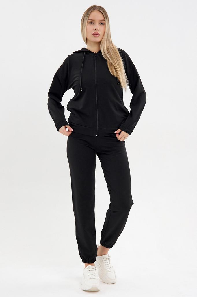 Стильный и уютный женский костюм из качественного футера двухнитки. Состав ткани: 95% хлопок, 5% эластан — материал мягкий, дышащий, хорошо сохраняет форму и не теряет вид после стирок. Толстовка с ка... Показать описаниепюшоном на молнии дополнена двумя удобными карманами и небольшим принтом, который добавляет модели индивидуальности. Брюки на мягкой резинке пояса и с резинками по низу штанин обеспечивают идеальную посадку и комфорт в движении. Идеальный выбор для повседневной носки, прогулок и отдыха. * Артикул: 10655 * Состав Хлопок 70%, П/Э 22%, Эластан 8% * ГОСТ 31409-2009 * Цвет Черный * Изготовитель ИП Вартанян Марина Валерьевна * Торговая марка Lika Dress * Тип ткани Футер 2-х нитка * Длина изделия Кофта: 44/46-60, 48/50-63, 52/54-65, 56/58-67 Брюки: 44/46-76, 48/50-77, 52/54-77, 56/58-77 * Для кого для женщин * Застежка Молния * Плотность ткани Плотная * Уход Машинная стирка * Карманы Накладные * Комплектность Капюшон * ТН ВЭД 6104299000